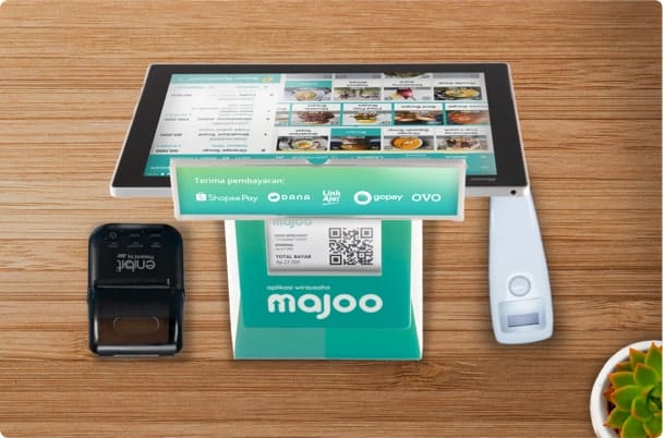 Sistem POS kedua yang direkomendasikan adalah Majoo. Tidak berbeda dengan Moka POS, Majoo juga menawarkan fitur-fitur pendukung bisnis mulai dari aplikasi kasir hingga aplikasi management karyawan.