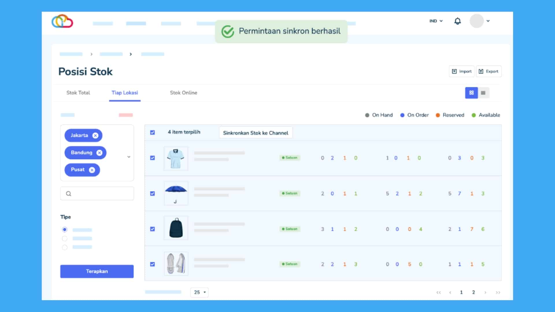 Jubelio adalah aplikasi stok barang berbasis cloud yang banyak digunakan oleh UMKM dan bisnis retail. Aplikasi barang Jubelio menawarkan integrasi dengan marketplace populer seperti Shopee dan Tokopedia.