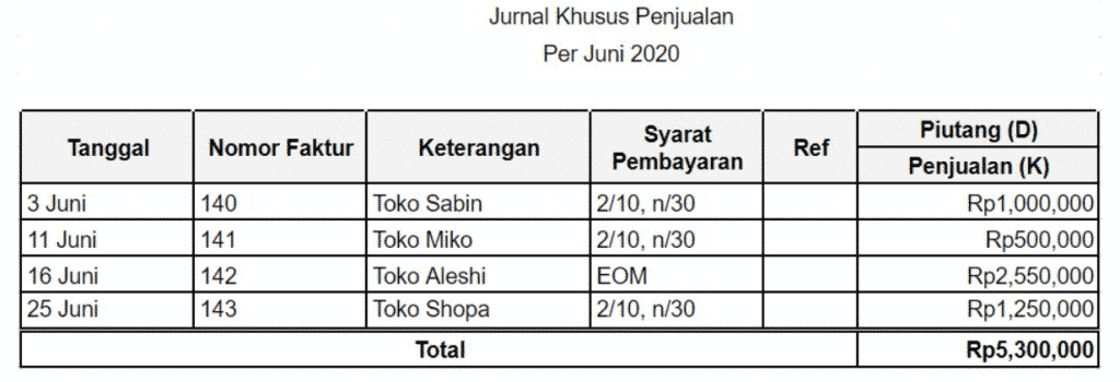 Referensi dapat diisi pada jurnal khusus di penjualan sudah dapat diposting ke dalam buku besar. Proses pencatatannya dilakukan setiap bulannya.