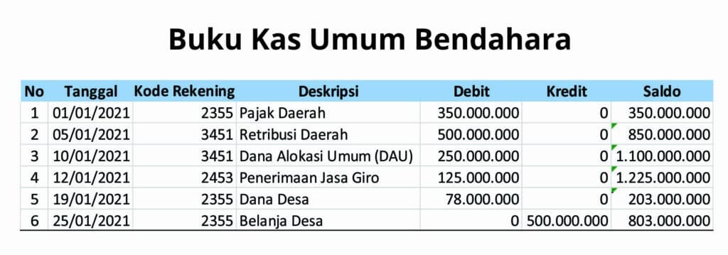 Bendahara sebagai pihak yang bertanggung jawab pada urusan keuangan bisnis pasti akrab dengan buku kas. Berikut ini contoh buku kas pada bendahara desa.