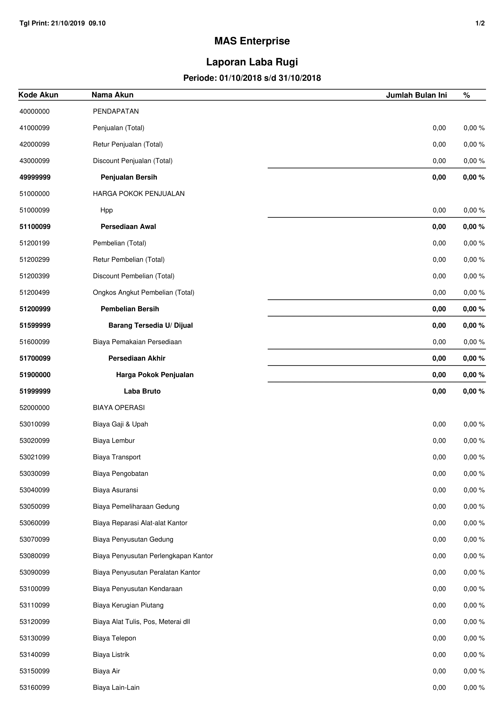 Contoh Format Laporan Laba Rugi di MASERP
