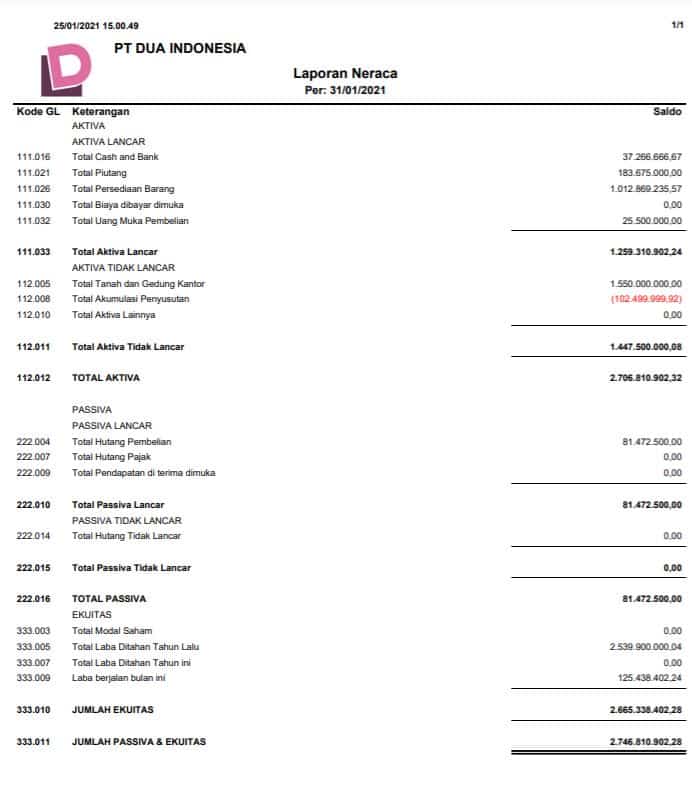 Nilai aktiva dan pasiva di laporan neraca harus seimbang, kalau ada selisih berarti ada kesalahan dalam pencatatannya. Tujuan dibuatnya laporan neraca adalah untuk melihat kondisi kesehatan keuangan perusahaan.