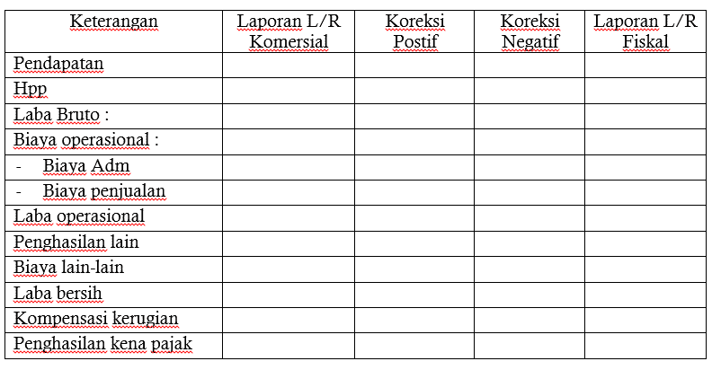 Contoh Tabel Penerapan Rekonsiliasi Fiskal