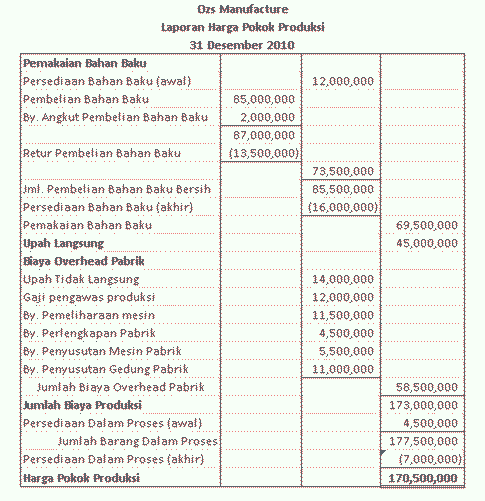Laporan harga pokok produksi juga terdiri beberapa komponen biaya produksi agar menghasilkan harga pokok produksi secara keseluruhan.