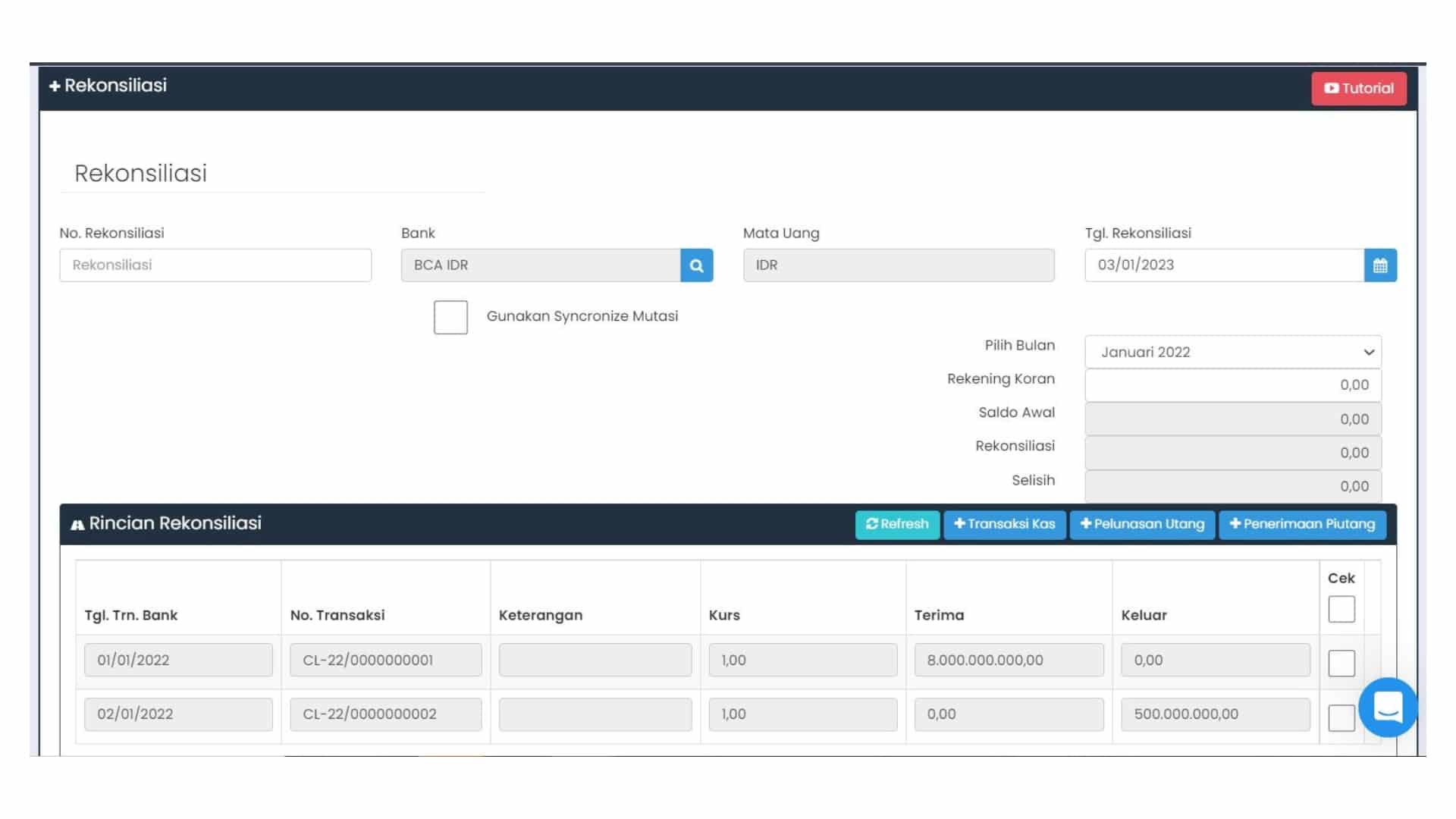 Rekonsiliasi banyak transaksi dalam satu sistem